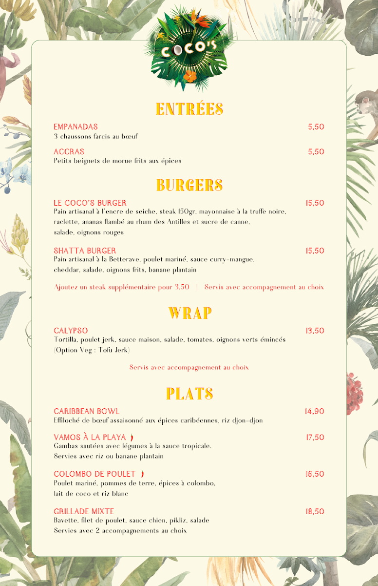 Welcome to Coco's - CC Lillenium, a vibrant culinary gem nestled in the heart of Lille, France. Located at 2 Rue du Faubourg des Postes, this restaurant invites you into a warm and inviting atmosphere that embodies Caribbean vibes. Guests praise the exceptional food and friendly service, making each visit memorable.